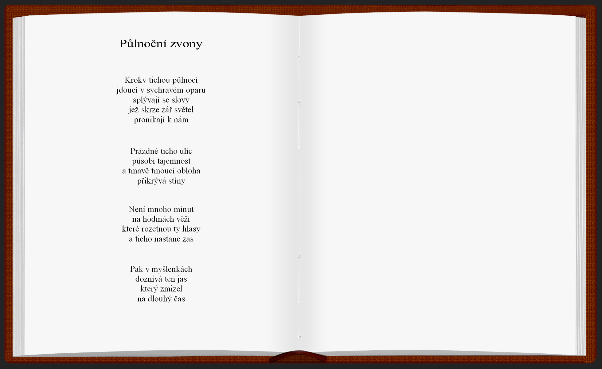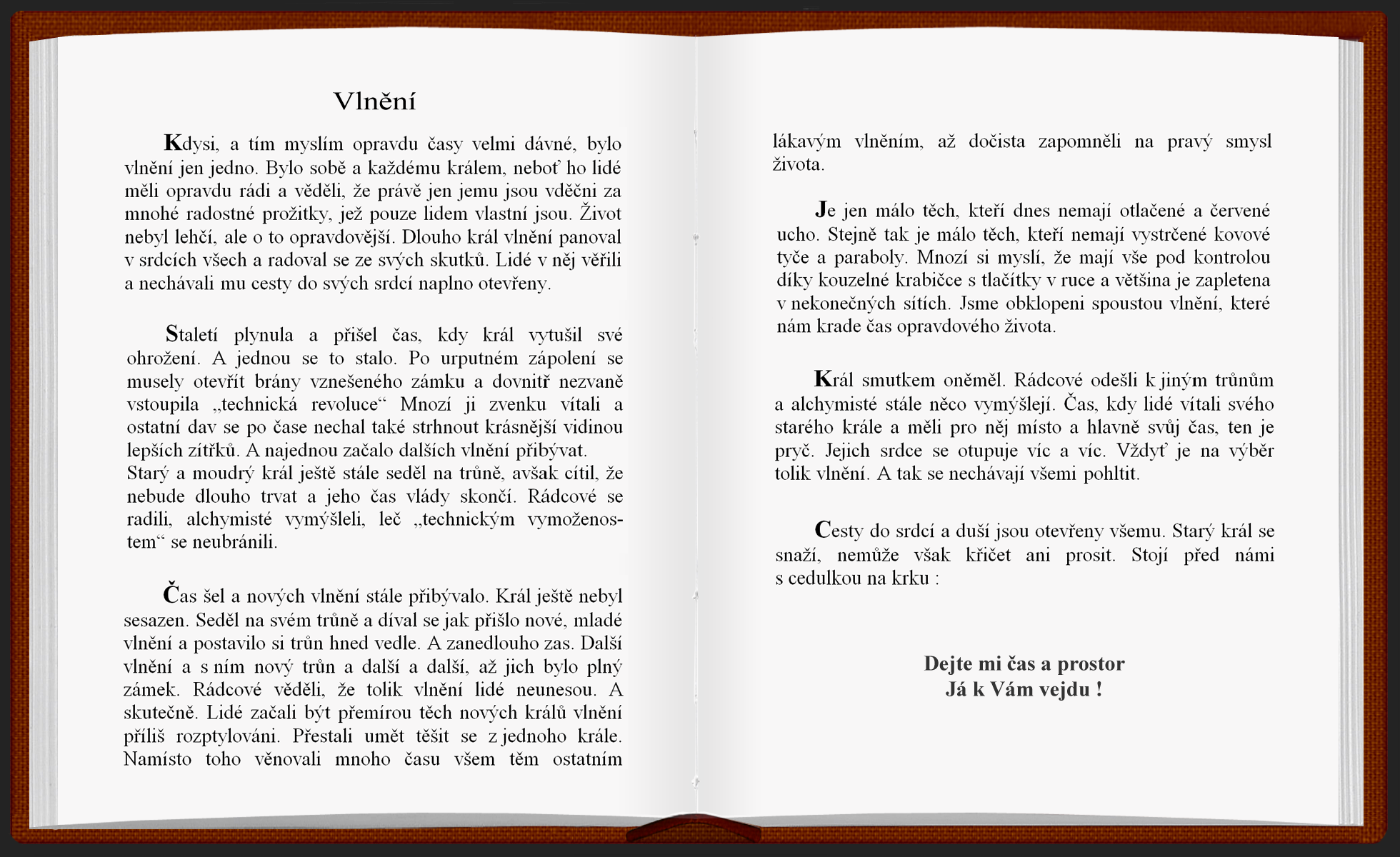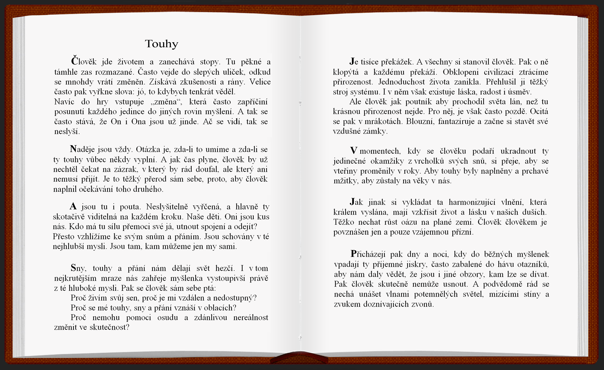 A tak ve stejném duchu jako jsem psal u hudby, že je "neslušné" nechat hudbu v šuplíku, tak v tento moment otvírám šuplík s mými "spisovinami". Dejte pozor, ať se Vám písmenka nerozsypou a čtěte pomalu.